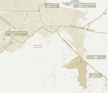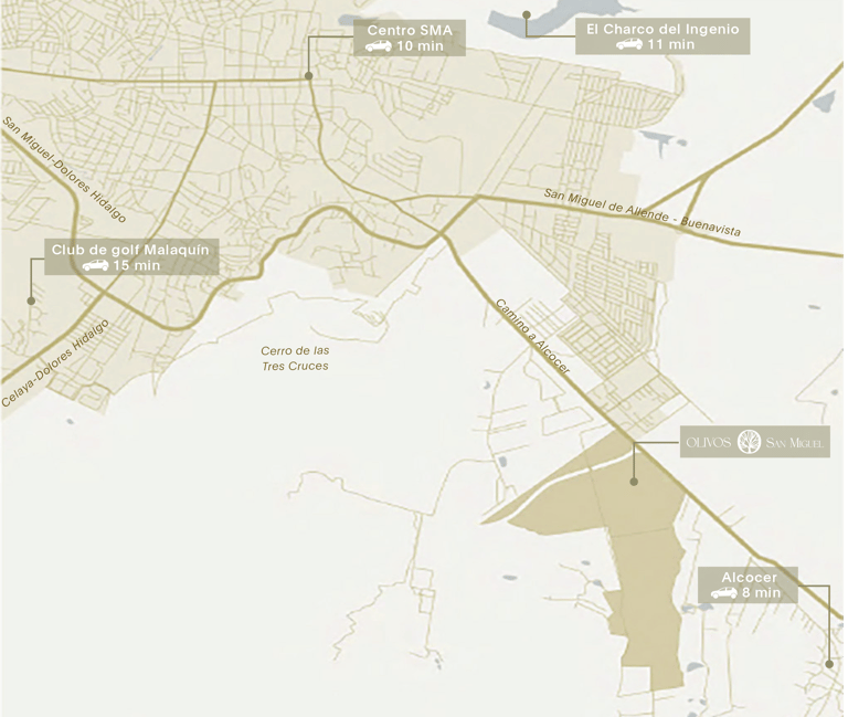 A solo 10 min del centro de San Miguel de Allende, Olivos San Miguel se encuentra conectado a otros de los lugares con mayor atractivo de la zona.