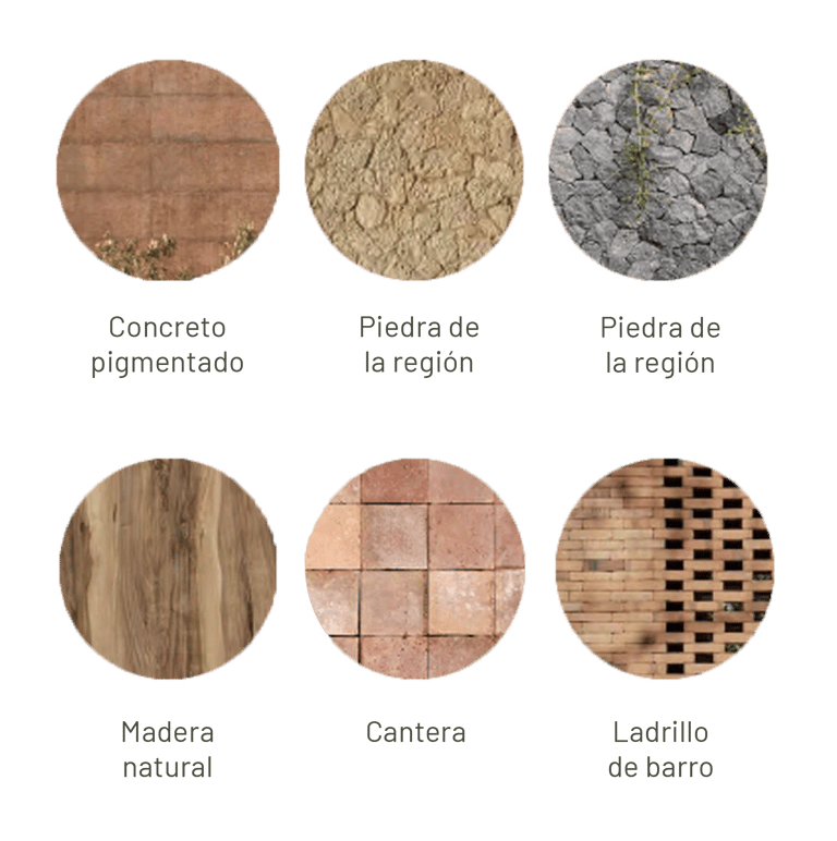 Con el objetivo de integrarse armónicamente al paisaje semiseco de Guanajuato, la paleta de colores toma inspiración directa del entorno natural. Los materiales de fachada deben responder a esta identidad, priorizando tonos neutros y cálidos que refuercen la unidad visual del conjunto residencial.